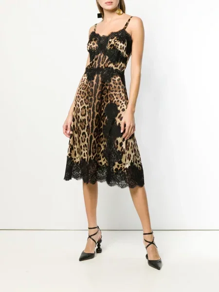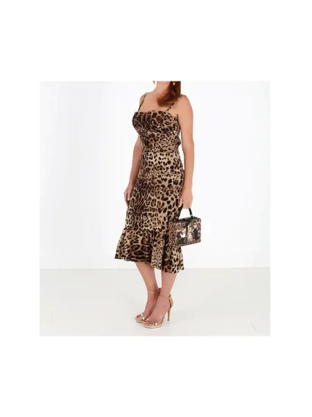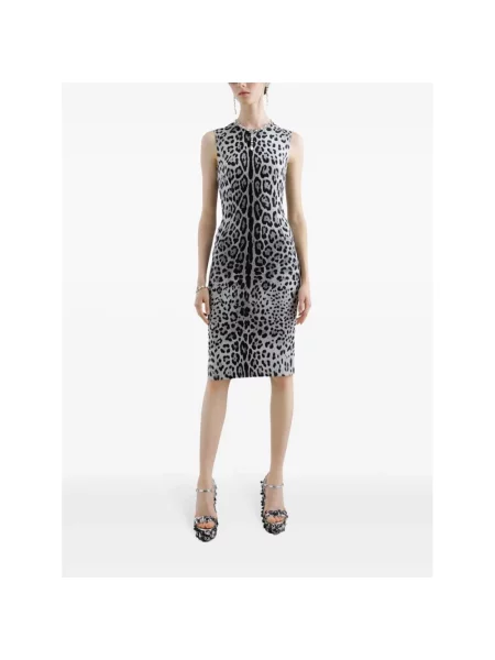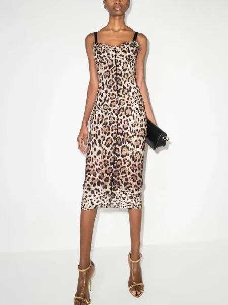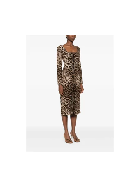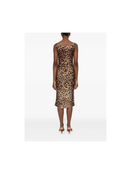 Dolce And Gabbana Sukienka midi z nadrukiem w panterkę do kolan