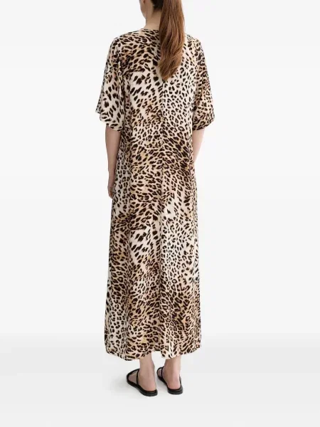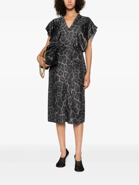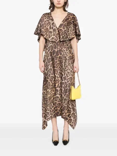 Stella Mccartney Sukienka midi z nadrukiem w panterkę z dekoltem w serek