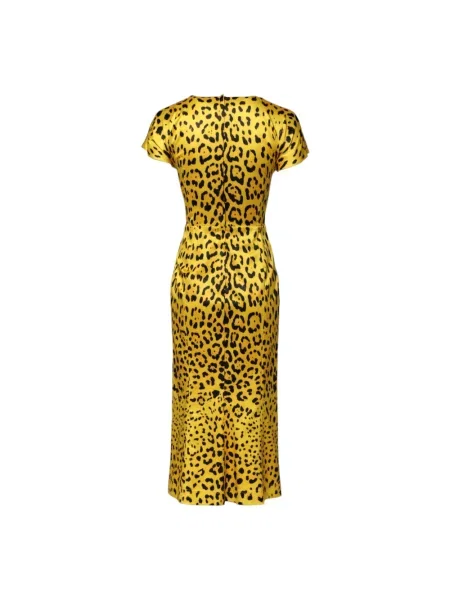 Alessandra Rich Jedwabna sukienka midi z nadrukiem w panterkę