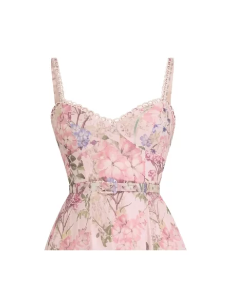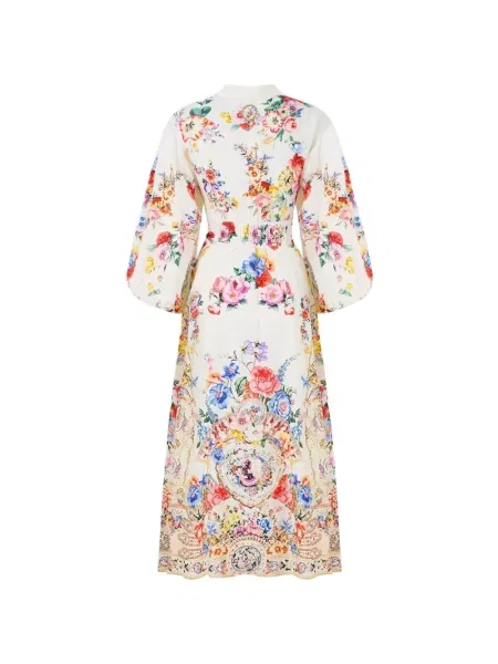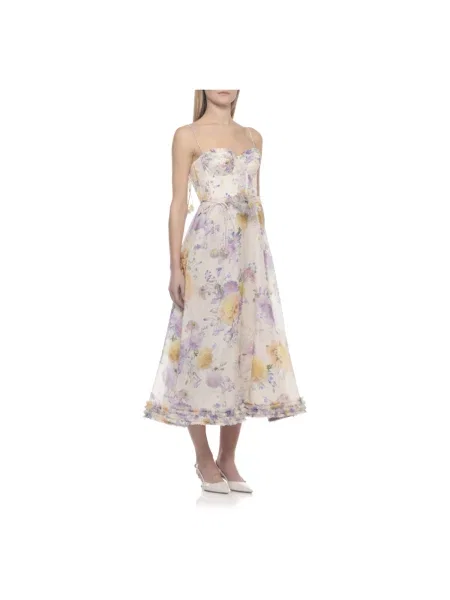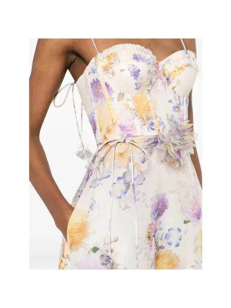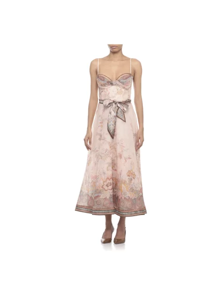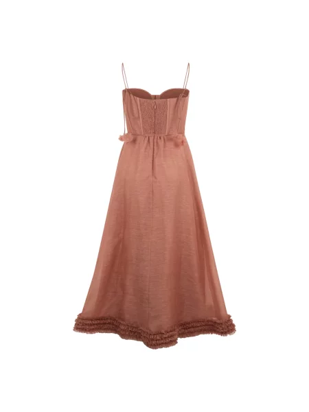 Zimmermann Lniana sukienka midi w grochy z falbankami