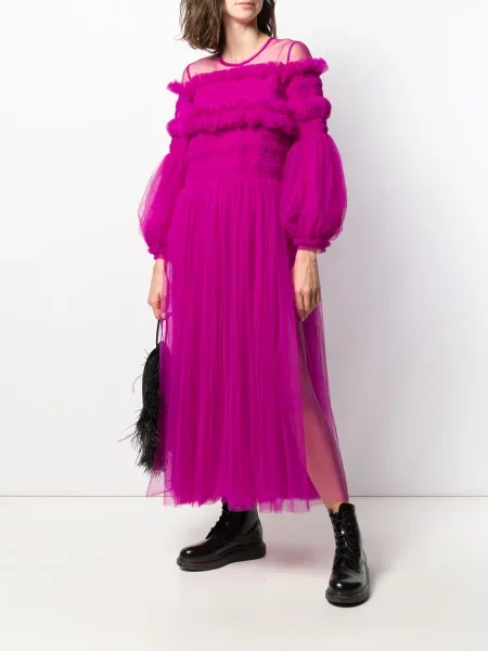 Sukienka midi z falbankami tiulowa do kolan