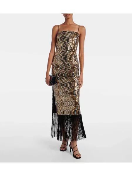 Taller Marmo Sukienka midi z frędzli do kolan garniturowa
