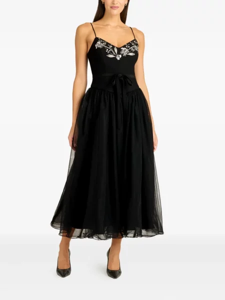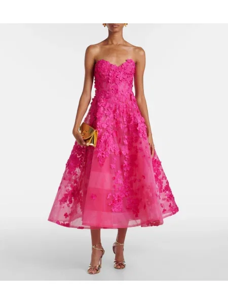 Carolina Herrera Sukienka midi tiulowa do kolan z odkrytymi ramionami
