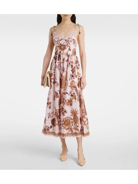 Johanna Ortiz Sukienka midi w tropikalny nadruk do kolan garniturowa