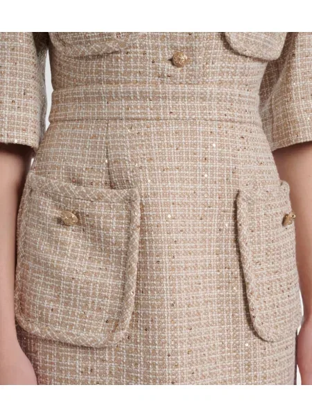 Alessandra Rich Sukienka midi tweedowa do kolan garniturowa