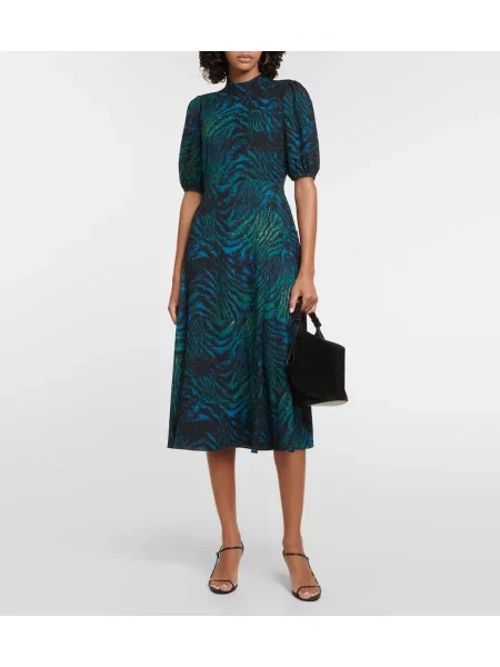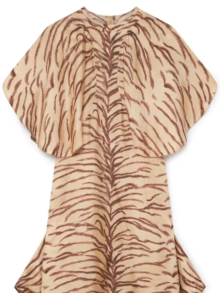Stella Mccartney Jedwabna sukienka midi z nadrukiem w tygrysie prążki