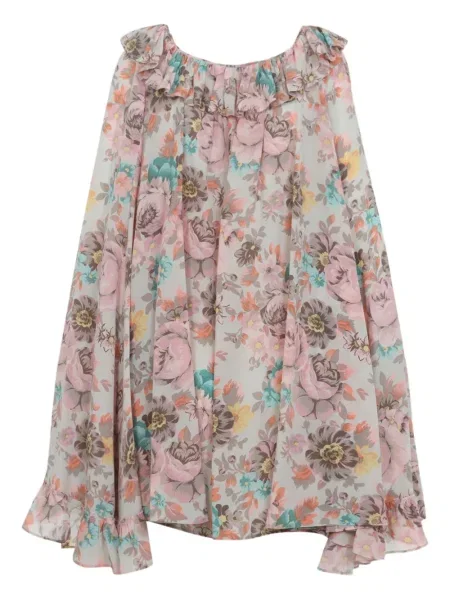 Chloe Sukienka mini w kwiatki z falbankami garniturowa