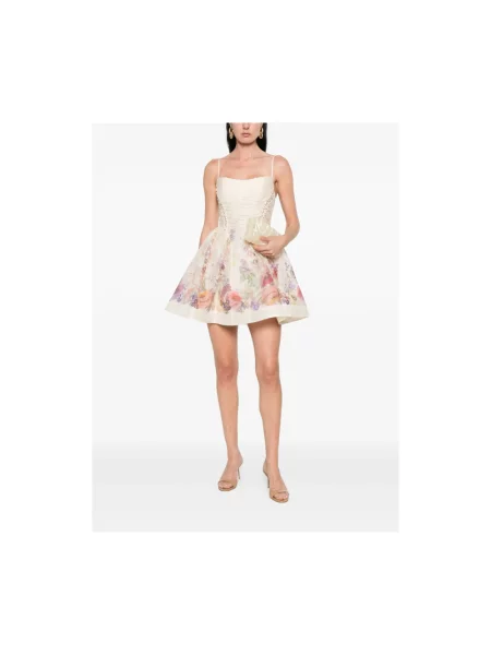 Costarellos Sukienka mini w kwiatki z koralikami bez ramiączek