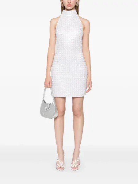 Rotate Birger Christensen Sukienka mini z koralikami z dekoltem halter garniturowa