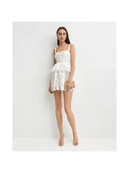 Self-portrait Lniana mała sukienka mini w kwiatki