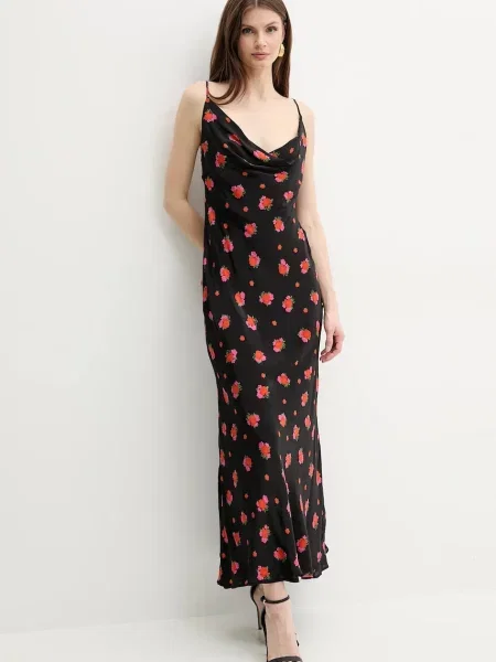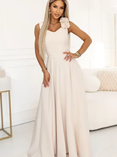 Numoco Satynowa długa sukienka maxi z kryształkami