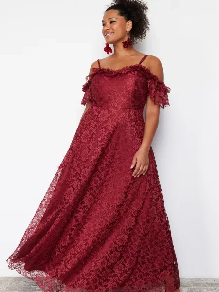 Kocula Długa sukienka wieczorowa z długim rękawem koronkowa