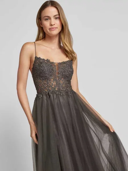 V.m. Sukienka wieczorowa z dekoltem w serek i skrzyżowanymi ramiączkami