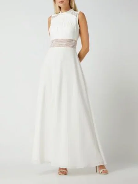 V.m. Vm Vera Mont Sukienka Wieczorowa Z Szydełkowaną Koronką weiss