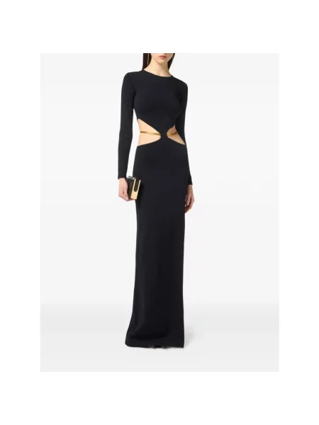 Jean Paul Gaultier Długa sukienka maxi z wysokim kołnierzem z siateczką