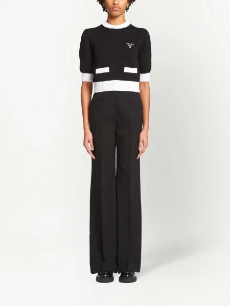Prada Haftowany sweter z krótkim rękawem o krotszym kroju