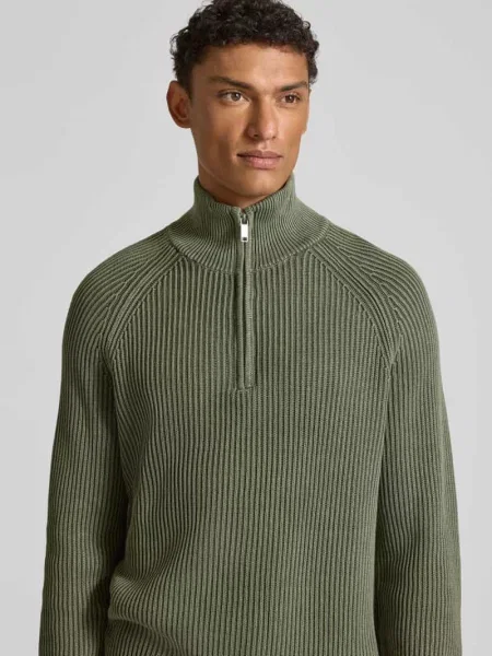 Christian Berg Men Sweter z dzianiny o kroju regular fit z mieszanki wełny z wykładanym kołnierzem