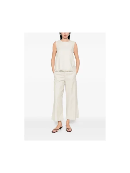 Top Max Mara z frędzli bez rękawów beżowy