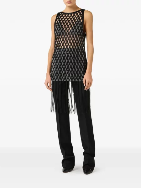 Top Pinko z frędzli czarny