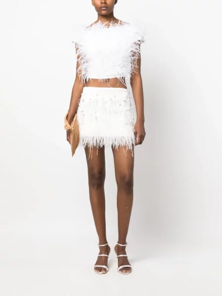 Top Atu Body Couture w piórka biały