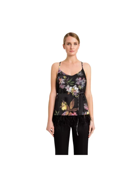 Krótki wielobarwność top Twinset w piórka czarny